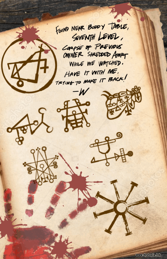 As we close out Chapter Two, we couldn’t resist sharing one last bit of “found footage” from the archives, a glimpse into the arcane madness lurking down on the Seventh Level. Jackwraith slipped this one to me with a sly grin - If you’re the type who enjoys digging deeper, you might recognize (or have the desire to decipher) the sigils scattered across the page.